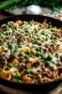 Cremige Rinderhack-Käsesoße mit Erbsen & Zwiebeln