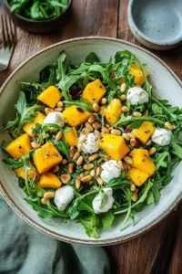Rucola-Mango-Salat mit gerösteten Pinienkernen