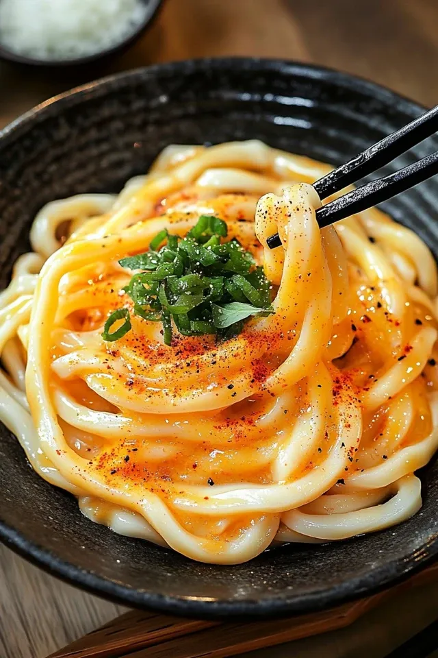 Udon-Nudeln richtig zubereiten: Frische Udon-Nudeln sind ideal. Kochen Sie sie nach Packungsanweisung, aber achten Sie darauf, sie nicht zu verkochten. Sie sollten al dente sein, damit sie die cremige Soße gut aufnehmen können. Ein schneller Kaltwasser-Schock nach dem Kochen verhindert ein Verkleben.