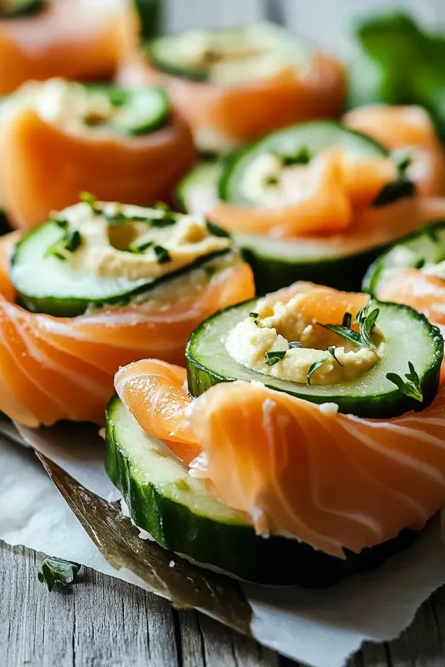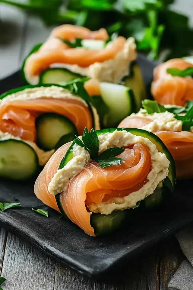 Die Kombination aus zartem geräuchertem Lachs, knackiger Gurke und cremigem Hummus bietet eine wunderbare Textur- und Geschmacksvielfalt. Es ist unglaublich einfach zu kochen und benötigt nur minimale Vorbereitungszeit, sodass Sie mehr Zeit mit Ihren Liebsten verbringen können.