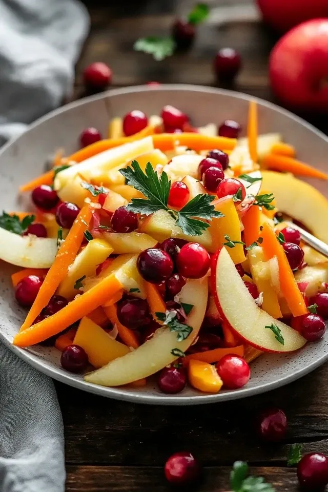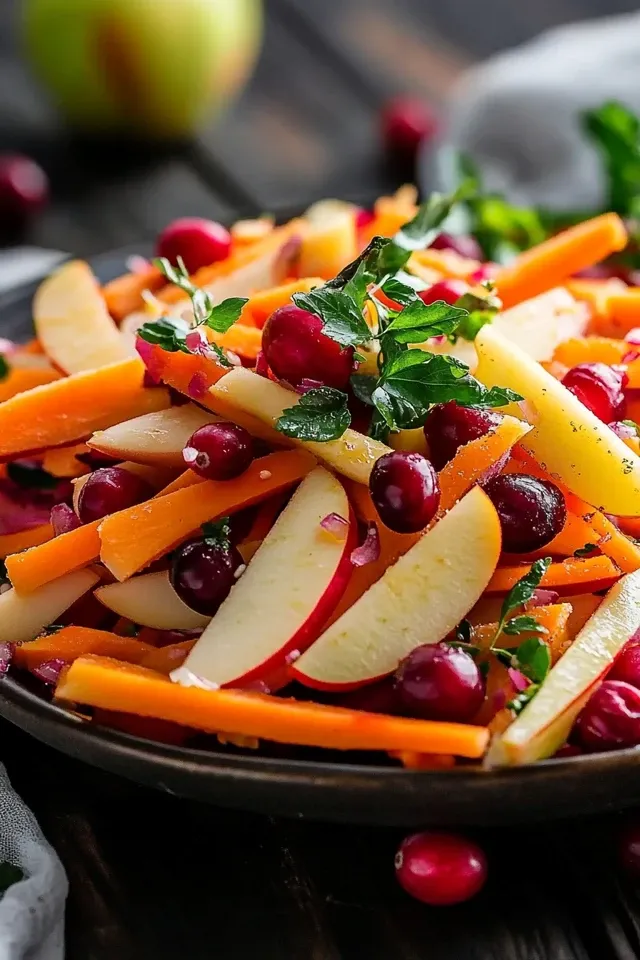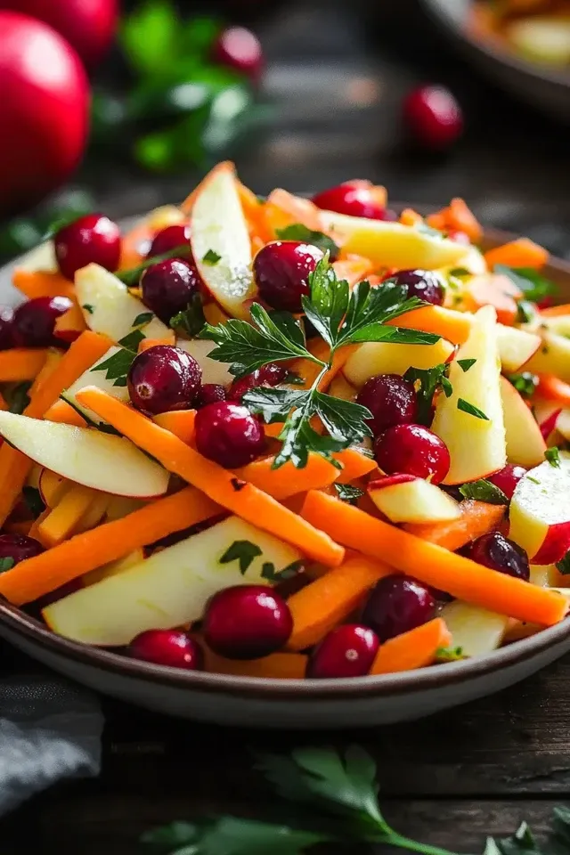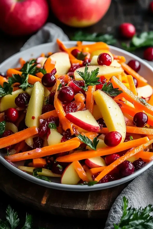 Dieser knackige und farbenfrohe Apfel-Cranberry-Karottensalat ist ein leichter und belebender Genuss. Er kombiniert süße und saure Noten mit einer herrlichen Textur, perfekt als Beilage oder Hauptgericht.
