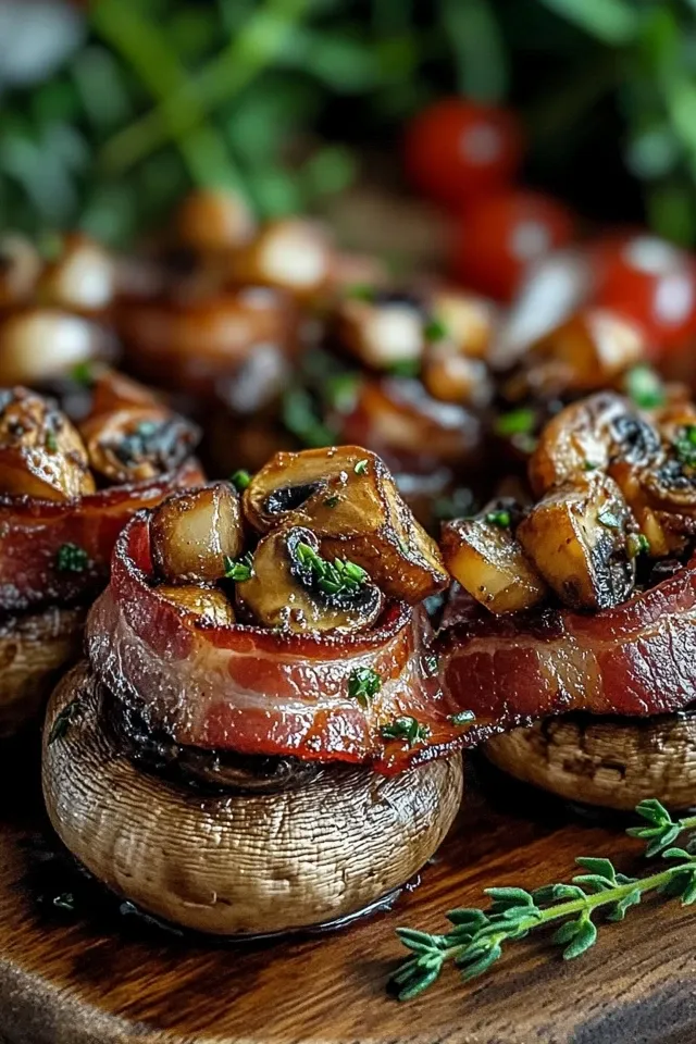 Gefüllte Champignons im Rinderbacon-Mantel: Herzhaft & Einfach
