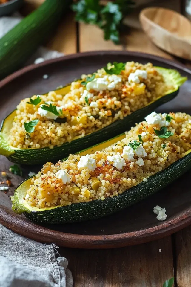 Diese bunten und aromatischen Zucchinihälften sind nicht nur ein Fest für die Augen, sondern auch ein Gaumenschmaus. Die Kombination aus fluffigem Couscous, cremigem Feta, frischen Kräutern und knackigem Gemüse macht jede Gabel zu einem wahren Genuss. Es ist die ideale Wahl für ein schnelles, gesundes Gericht, das beeindruckt.