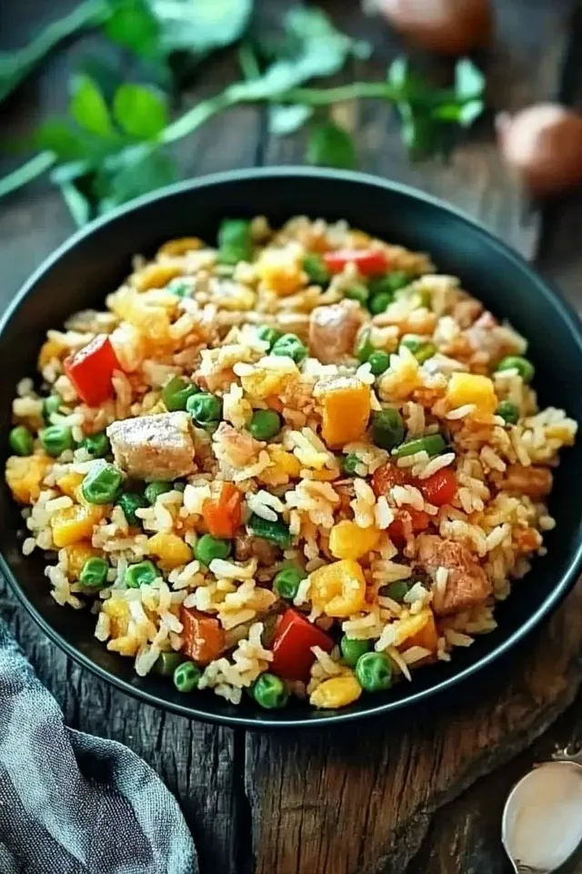 Dieser hawaiianische gebratene Reis ist die perfekte Kombination aus süß und herzhaft. Die frische Ananas verleiht dem Gericht eine exotische Note, während das herzhafte Rinderschinken-Aroma für eine tiefe Würze sorgt, die wunderbar mit dem Reis harmoniert.