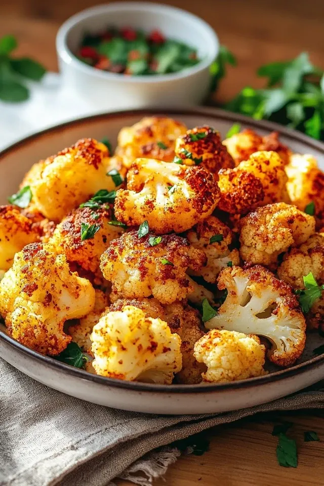 Für eine zusätzliche Schärfe kannst du eine Prise Cayennepfeffer hinzufügen. Etwas Zitronensaft nach dem Backen verleiht dem Blumenkohl eine frische Note. Auch köstlich mit einer Joghurtsauce oder Tahini-Dressing.