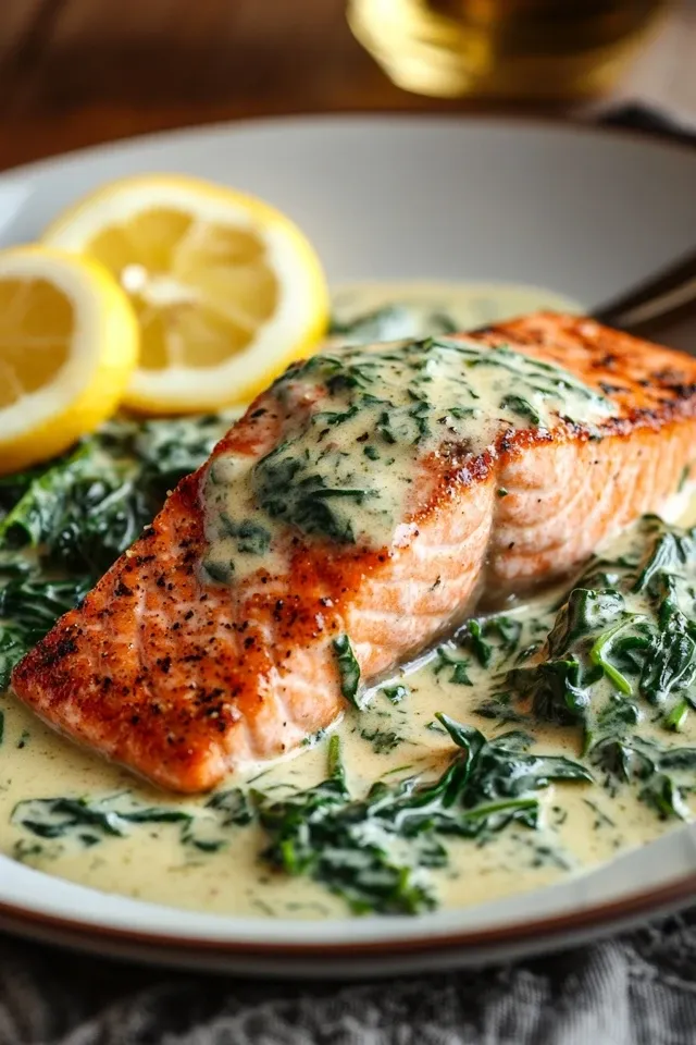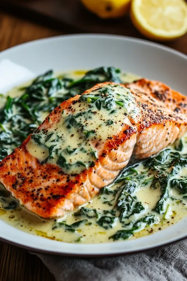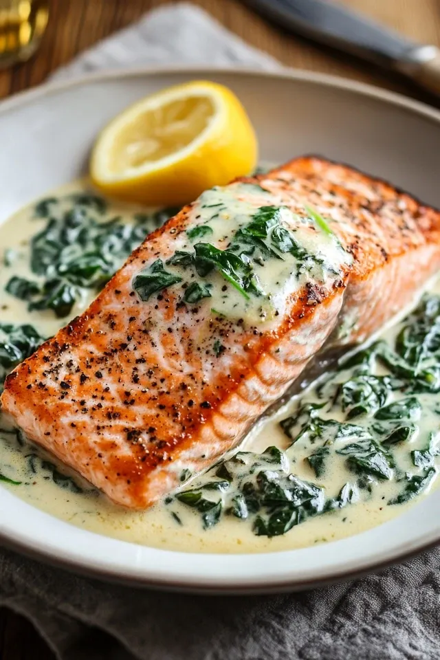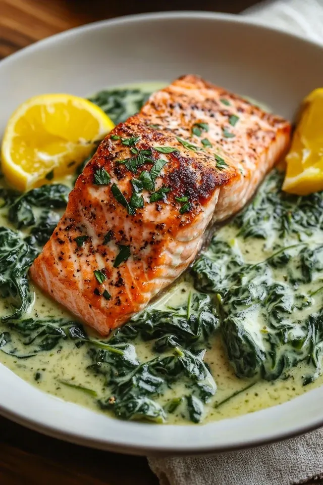 Ein cremiges und raffiniertes Lachsgericht auf einem Bett aus würzigem Rahmspinat. Dieses Rezept ist schnell zubereitet und perfekt für ein gesundes, leichtes Abendessen oder als beeindruckendes Gericht für Gäste.