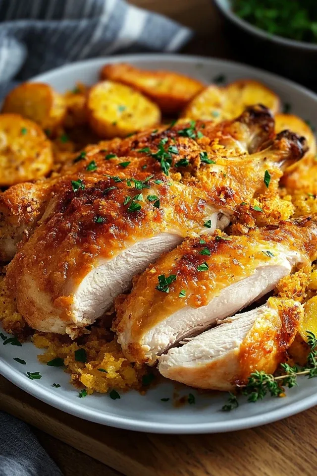 Ein einfaches und köstliches Rezept für perfekt gebackenes Hähnchen, das außen knusprig und innen unglaublich saftig ist. Ideal für ein unkompliziertes Familienessen.
