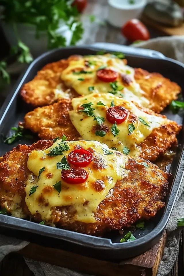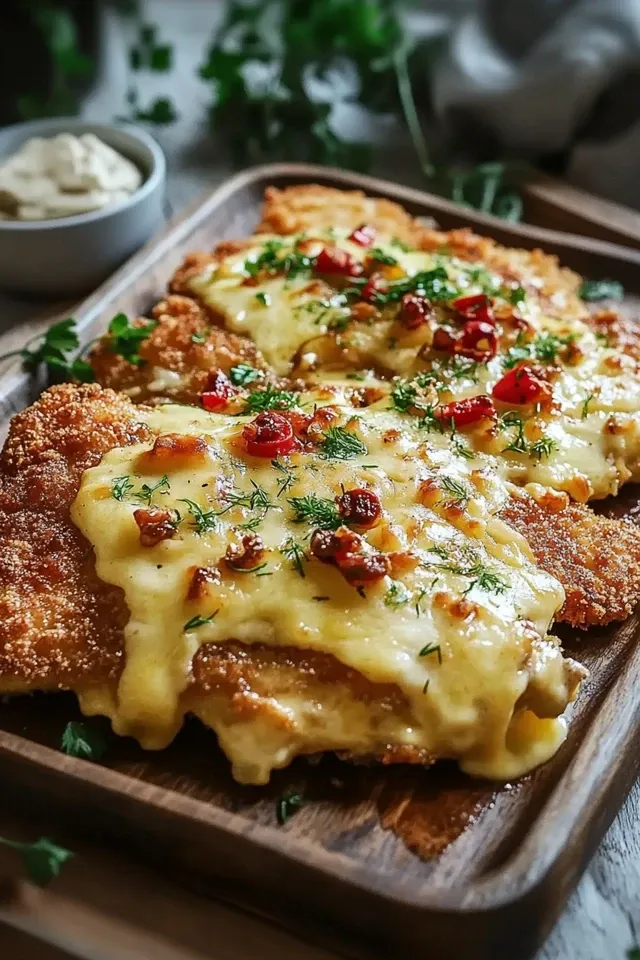 Zarte Hähnchenschnitzel, knusprig paniert und anschließend mit geschmolzenem Käse und aromatischen Gewürzen überbacken. Ein einfaches, aber beeindruckendes Gericht, das perfekt für Partys oder ein gemütliches Familienessen ist.