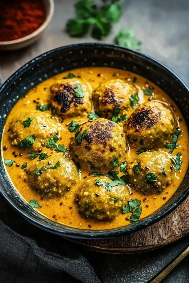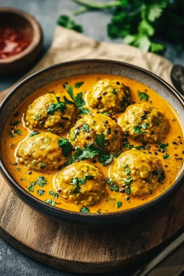 Herzhafte vegane Linsenknödel, die in einer reichhaltigen, aromatischen Curry-Sauce sanft gegart werden. Dieses Gericht ist perfekt für ein wärmendes, sättigendes und dennoch leichtes Abendessen.