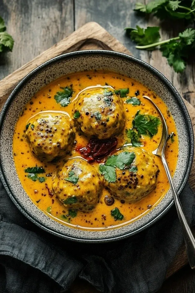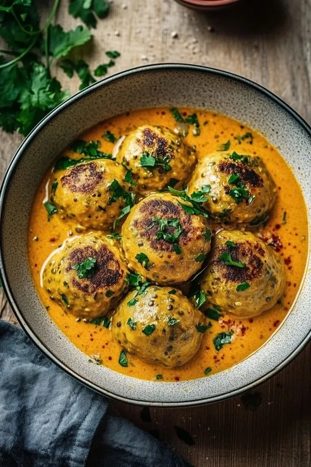 Herzhafte vegane Linsenknödel, die in einer reichhaltigen, aromatischen Curry-Sauce sanft gegart werden. Dieses Gericht ist perfekt für ein wärmendes, sättigendes und dennoch leichtes Abendessen.